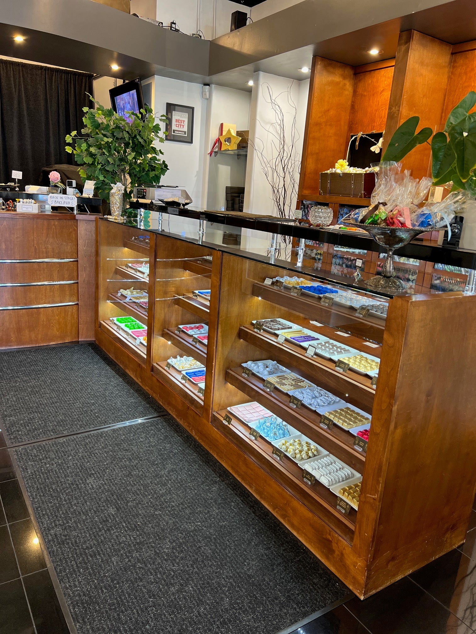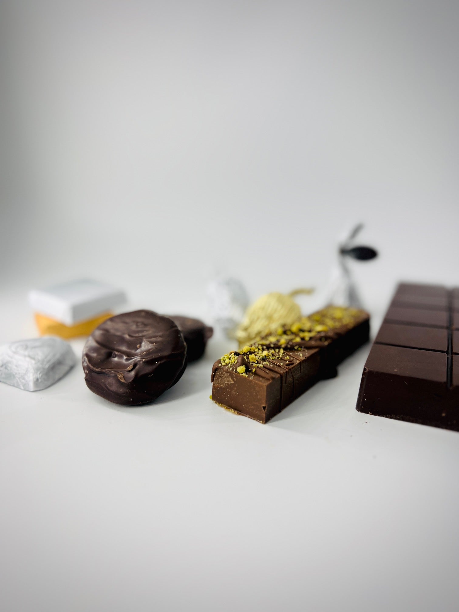 A boutique featuring Imported Lebanese chocolates, a luxurious milk and dark chocolate fountain, indulgent ice cream, meticulously handcrafted Dubai treats, and our exclusive Dubai Bar