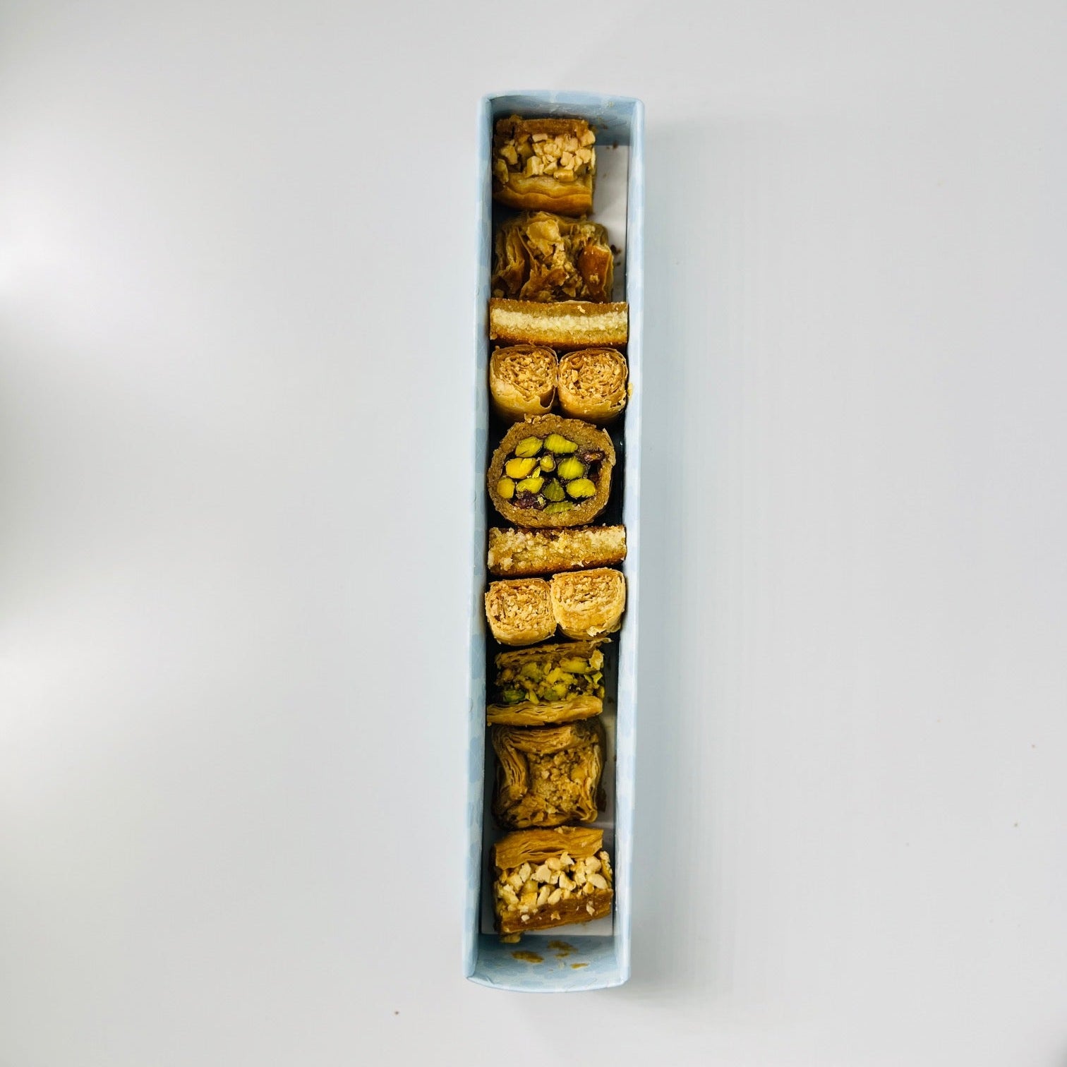 Delicate layers of crispy phyllo dough filled with roasted nuts and bound together with warm honey and spices. Each piece is handcrafted to deliver that perfect balance of crunch and sweetness. A timeless Middle Eastern treat that pairs beautifully with coffee or tea.