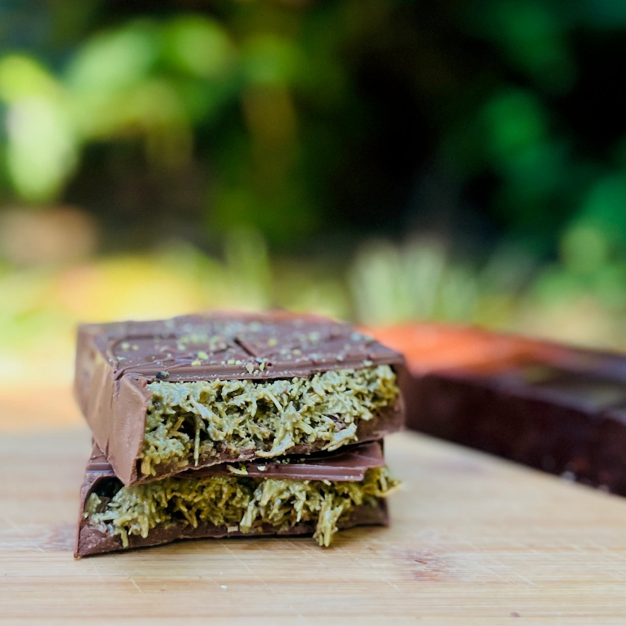 Milk or Dark Dubai Chocolate Bar made with the butter sauteed Fillo dough (kunefe), pistachio cream, and pistachio gianduja.