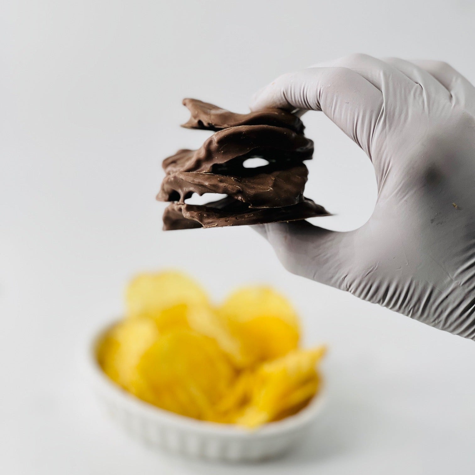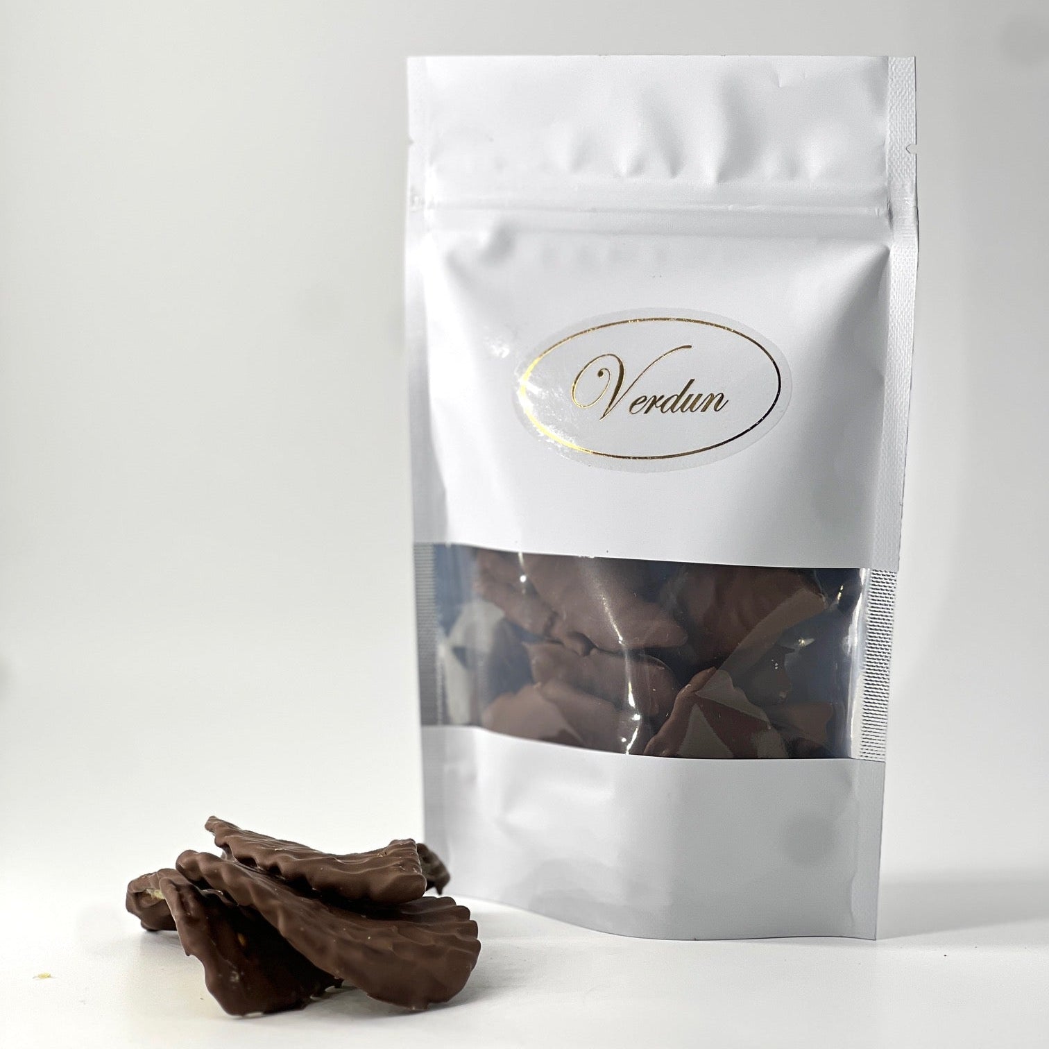 Chocolate Covered Potato Chips. Crisp cooked potato chips and a hint of sea salt mix and mingle in milk chocolate.